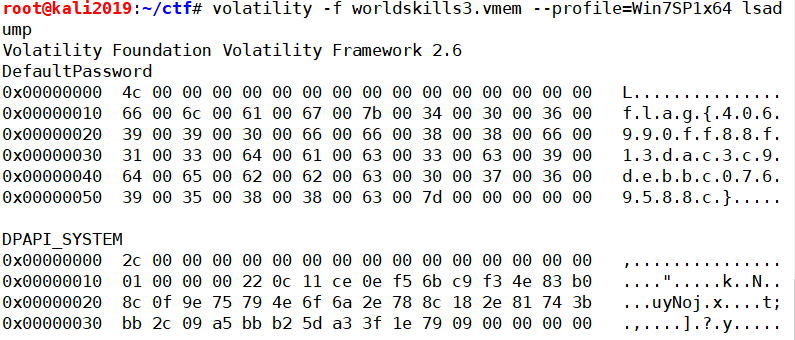 volatility -f worldskills3.vmem --profile=Win7SP1x64 lsadump